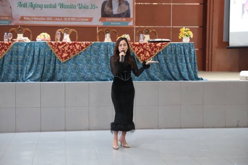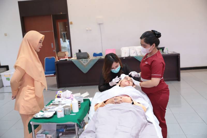“Kami tadi menyampaikan materi seputar menjaga wajah agar tidak cepat mengalami kerutan, flek hitam dan kami edukasi juga agar kulit tetap glowing. Kemudian, kami juga melakukan praktik secara langsung tindakan treatment DNA Salmon untuk mencegah penuaan dini,” jelasnya.