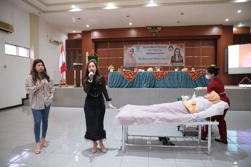Dharma Wanita Persatuan (DWP) Kota Tangerang menggelar edukasi peremajaan wajah bagi para anggotanya di Gedung Nyimas Melati, Kota Tangerang, Rabu (6/11/24).