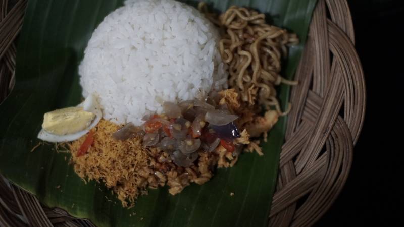"Kita punya beberapa pilihan nasi, dari nasi jinggo yang sudah dilengkapi dengan orek tempe, ayam suwir dan mie. Lalu ada juga nasi ayam betutu. Kita juga menyediakan beragam dessert, salah satunya rujak kuah pindang," jelas Handar.