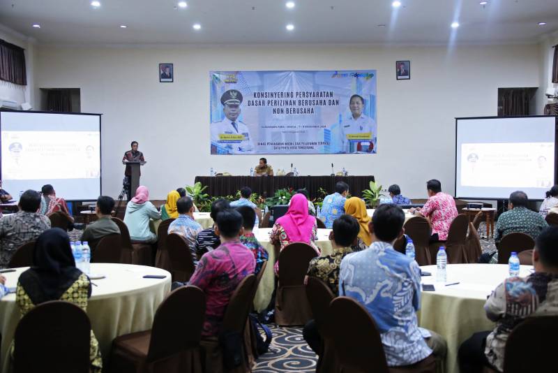 Penjabat (Pj) Wali Kota Tangerang, Dr. Nurdin, menghadiri sekaligus membuka kegitan Konsinyering Persyaratan Dasar Perizinan Berusaha dan Non Berusaha yang digelar oleh Dinas Penanamam Modal dan Pelayanan Terpadu Satu Pintu (DPMPTSP) Kota Tangerang.