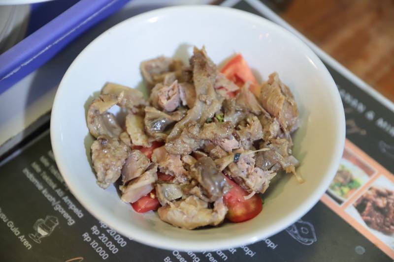 Beberapa menu yang dapat dicoba yaitu soto solo daging, sop iga, tongseng daging, dan soto babat kuah santan. Sedangkan untuk minumannya, terdapat wedang jahe, kopi susu gula aren, blue ocean dan blue blood.