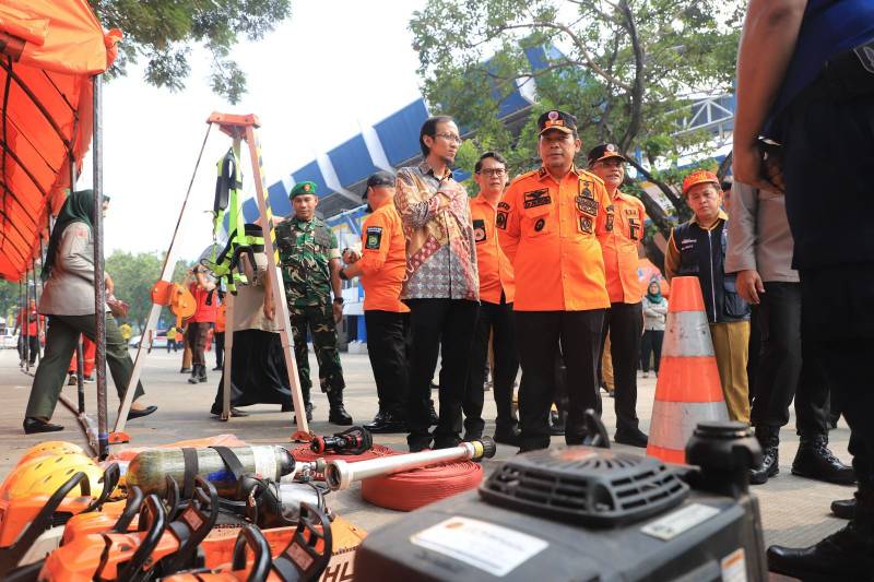 Pemerintah Kota Tangerang menggelar Apel Siaga Bencana tahun 2024, di Stadion Benteng Reborn, Kota Tangerang, Kamis (14/11/24). Apel ini untuk mengantisipasi terjadinya dampak dari bencana yang mungkin saja terjadi di musim penghujan, seperti banjir, angin kencang, pohon tumbang hingga puting beliung.