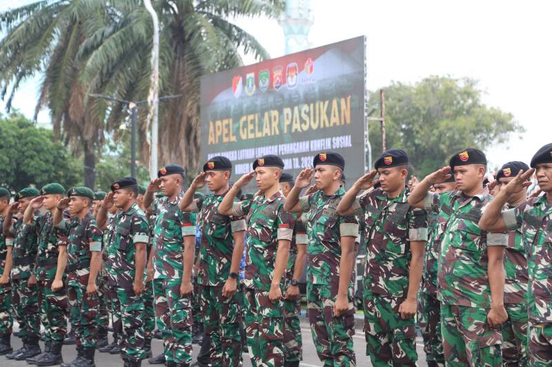Apel dipimpin Komandan Korem 052/Wijayakrama Brigjen TNI Krido Pramono, memastikan kesiapan personel dan materil dalam menjaga keamanan selama proses demokrasi berlangsung.