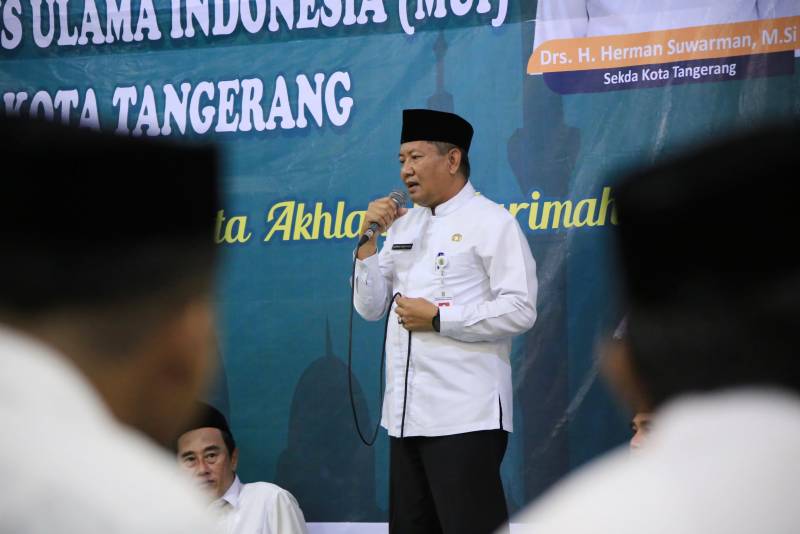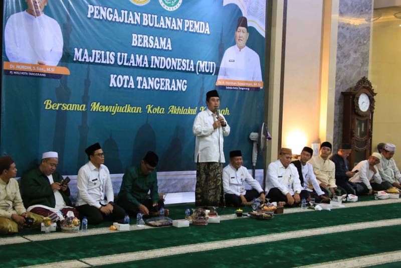 Sekretaris Daerah (Sekda) Kota Tangerang, Herman Suwarman, membuka Pengajian Bulanan Pemerintah Daerah yang diselenggarakan bersama Majelis Ulama Indonesia (MUI) Kota Tangerang di Masjid Nurul Amin, Kecamatan Karang Tengah, Jumat (22/11).