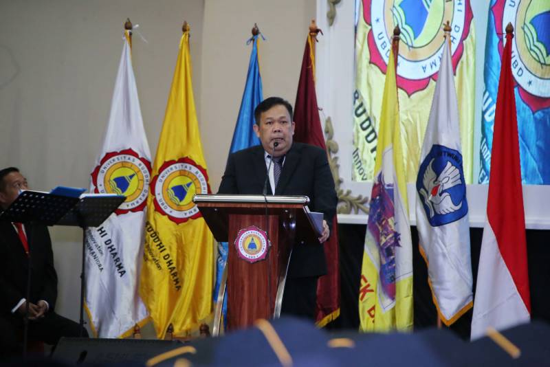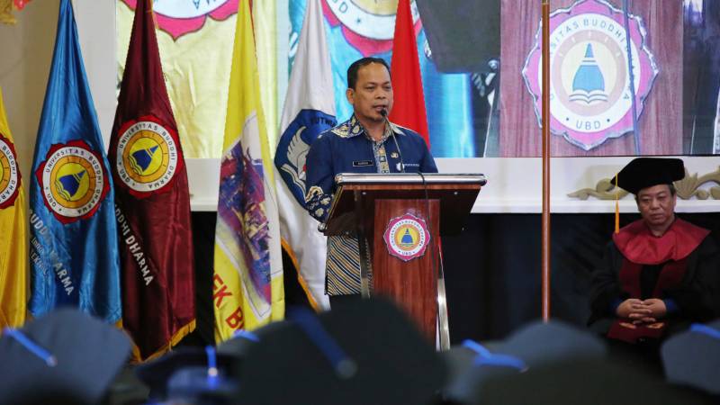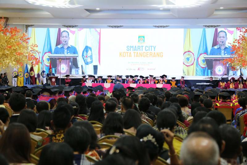 Penjabat (PJ) Wali Kota Tangerang, Dr. Nurdin, menghadiri Wisuda 572 Mahasiswa dan Mahasiswi Universitas Buddhi Dharma (UBD) yang berlokasi di Aula Kampus UBD, Kecamatan Karawaci Kota Tangerang, Sabtu (23/11).