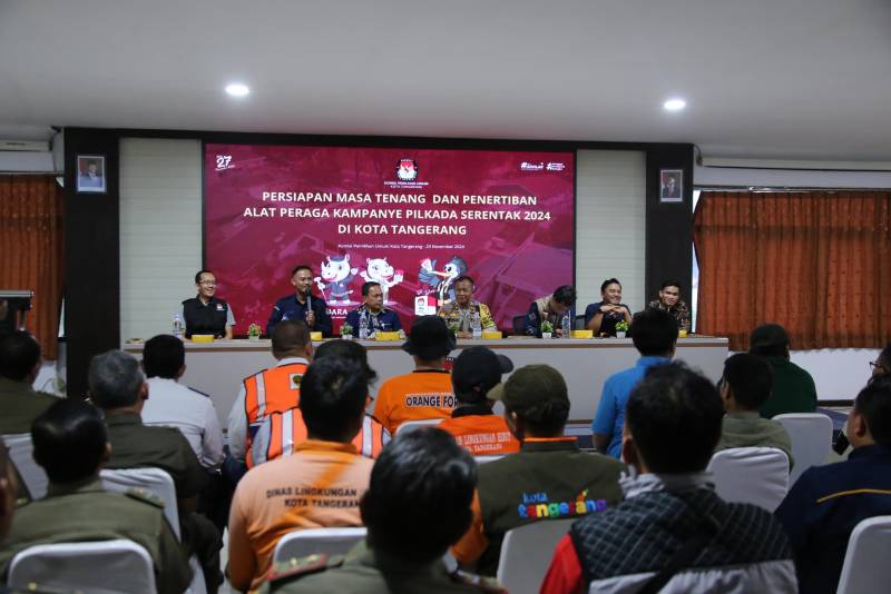 Penjabat (Pj) Wali Kota Tangerang, Dr. Nurdin, menegaskan komitmen Pemerintah Kota (Pemkot) Tangerang dalam mendukung pelaksanaan Pemilihan Kepala Daerah (Pilkada) serentak pada 27 November yang damai dan tertib. Hal ini disampaikan saat Kegiatan Persiapan Masa Tenang dan Penertiban Alat Peraga Kampanye (APK) Pilkada serentak 2024 Kota Tangerang, di Kantor KPU Kota Tangerang, Sabtu (23/11).