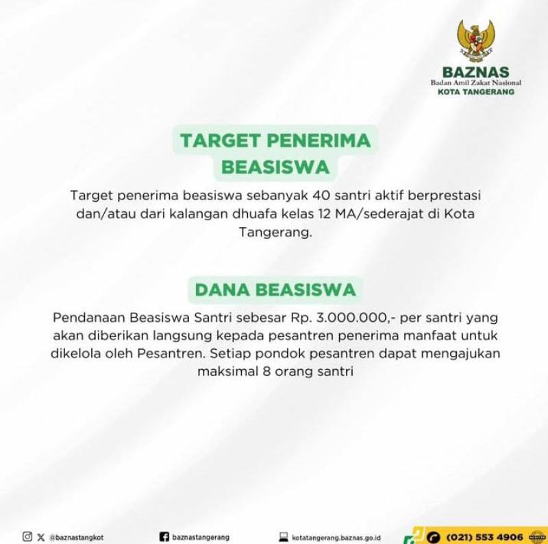 Berikut, persyaratan Beasiswa Santri BAZNAS Kota Tangerang 2024: