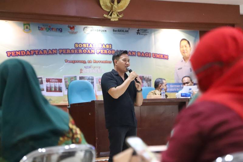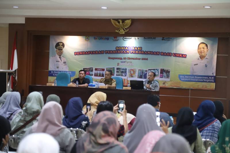 Dinas Perindustrian, Perdagangan, Koperasi, dan UKM (Disperindagkop UKM) Kota Tangerang menggelar Sosialisasi Pendaftaran Perseroan Perseorangan bagi UMKM.