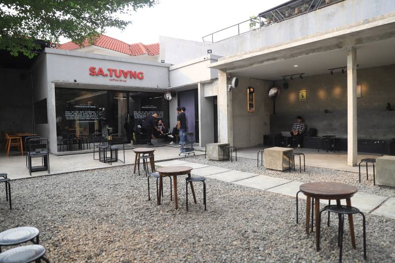 Sa.Tuang Coffee menghadirkan konsep industrial dengan space outdoor yang mendominasi. Tempat ini bisa menjadi rekomendasi tempat nongkrong di akhir pekan ini.