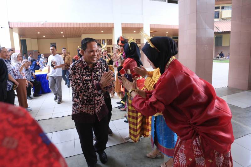 Penjabat (Pj) Wali Kota Tangerang, Dr. Nurdin, didampingi Kepala Dinas Pendidikan Kota Tangerang Jamaluddin, hadir dalam kegiatan Panen Hasil Belajar Guru Penggerak Loka Karya 7 Angkatan 11 Tahun 2024, Sabtu (7/12).