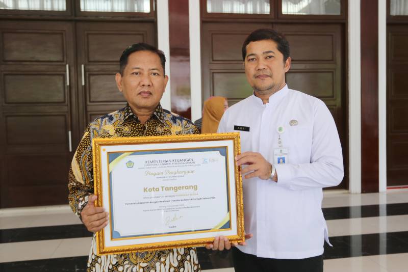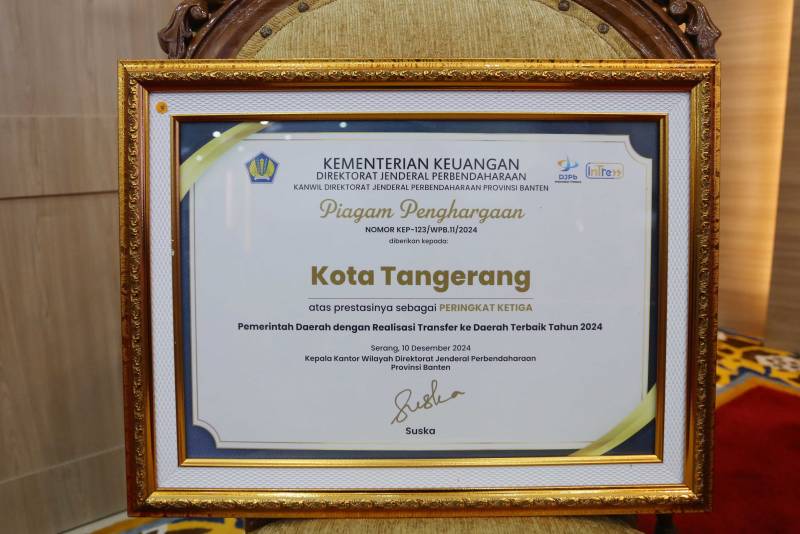 Kembali diganjar penghargaan, Pemerintah Kota (Pemkot) Tangerang meraih penghargaan Pemerintah Daerah dengan Realisasi Transfer ke Daerah Terbaik tahun 2024 dari Kementerian Keuangan Direktorat Jenderal Perbendaharaan Kanwil Provinsi Banten.