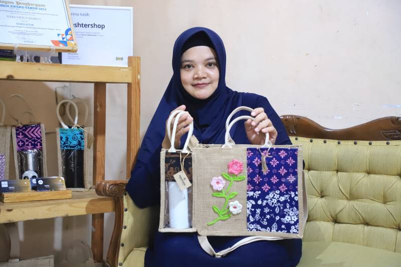 “Tidak hanya unik, pemilihan kain goni sebagai bahan tas juga sesuai dengan konsep go green atau ramah lingkungan karena bahan kainnya yang mudah terurai,” tambahnya.