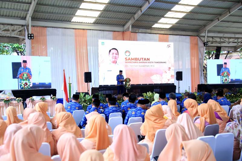Sekretaris Daerah Kota Tangerang, Herman Suwarman, menghadiri acara peringatan Hari Ulang Tahun (HUT) ke-25 Dharma Wanita Persatuan (DWP) tingkat Kota Tangerang. Acara yang diikuti oleh istri Aparatur Sipil Negara (ASN) Kota Tangerang ini, berlangsung meriah di Selasar Gedung Pusat Pemerintah Kota Tangerang pada Selasa (17/12). Berbagai rangkaian kegiatan seperti lomba menyanyi dan lomba dance tingkat perangkat daerah turut memeriahkan suasana perayaan.