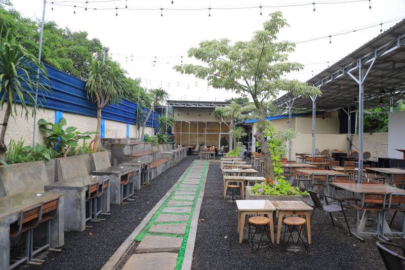 Sementara itu, area indoor dirancang dengan gaya minimalis namun tetap nyaman, cocok untuk bekerja atau berdiskusi.