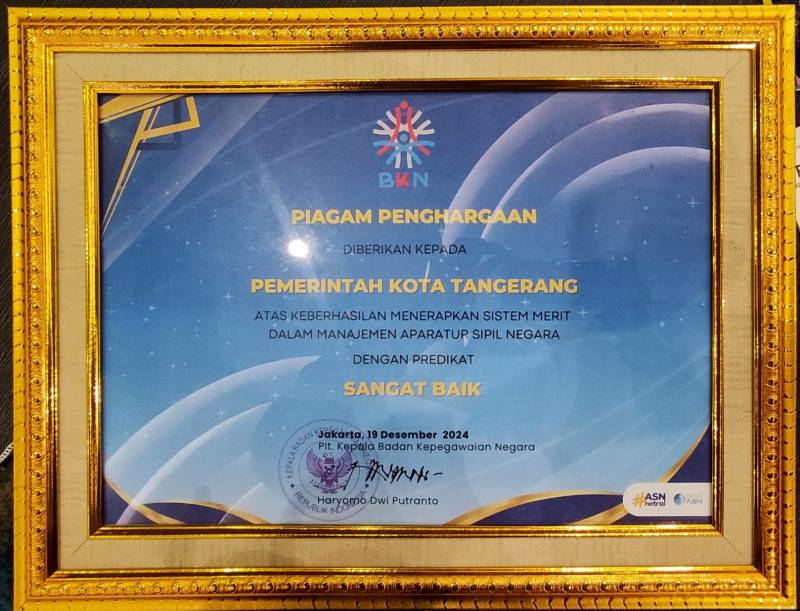 Pemerintah Kota (Pemkot) Tangerang kembali menunjukkan komitmennya dalam membangun tata kelola pemerintahan yang profesional dengan menerima Anugerah Meritokrasi dari Badan Kepegawaian Negara Republik Indonesia (BKN RI), yang berlangsung di Pullman Hotel, Jakarta, pada Kamis (19/12).