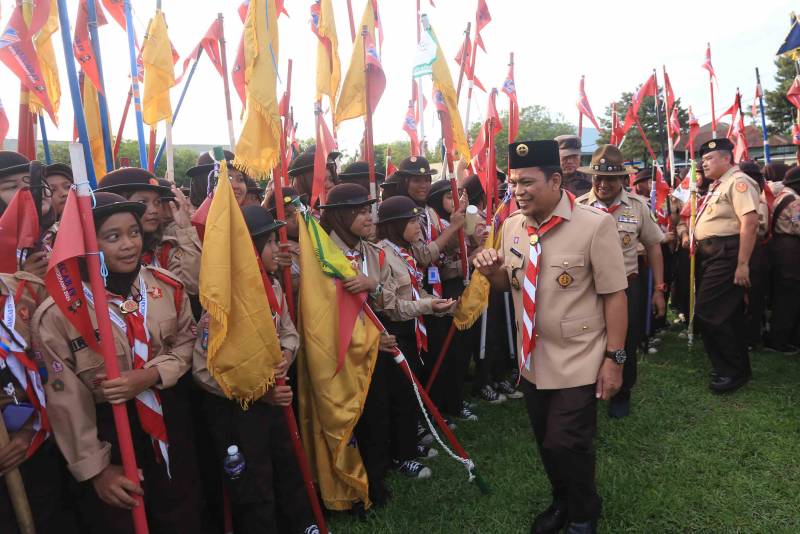 Dalam sambutannya, Dr. Nurdin menyampaikan apresiasi serta rasa bangga atas semangat ratusan anggota Pramuka yang turut berpartisipasi dalam kegiatan Jambore tahun ini.