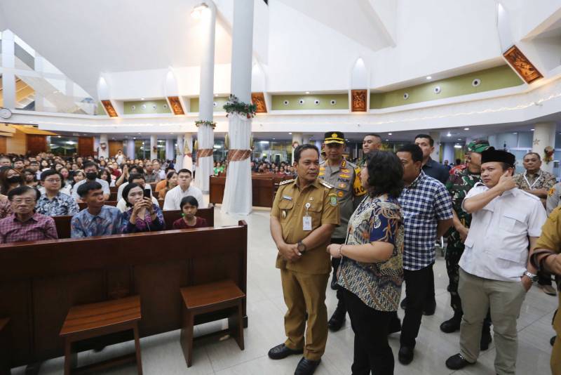Penjabat (Pj) Wali Kota Tangerang, Dr. Nurdin, bersama jajaran Forum Komunikasi Pimpinan Daerah (Forkopimda) Kota Tangerang, melakukan monitoring pelaksanaan ibadah misa Natal di sejumlah gereja di Kota Tangerang, Selasa malam (24/12). Monitoring ini bertujuan untuk memastikan perayaan Natal berlangsung secara khidmat dan kondusif hingga puncak perayaannya pada 25 Desember.