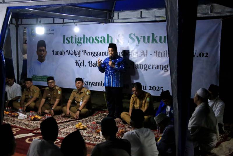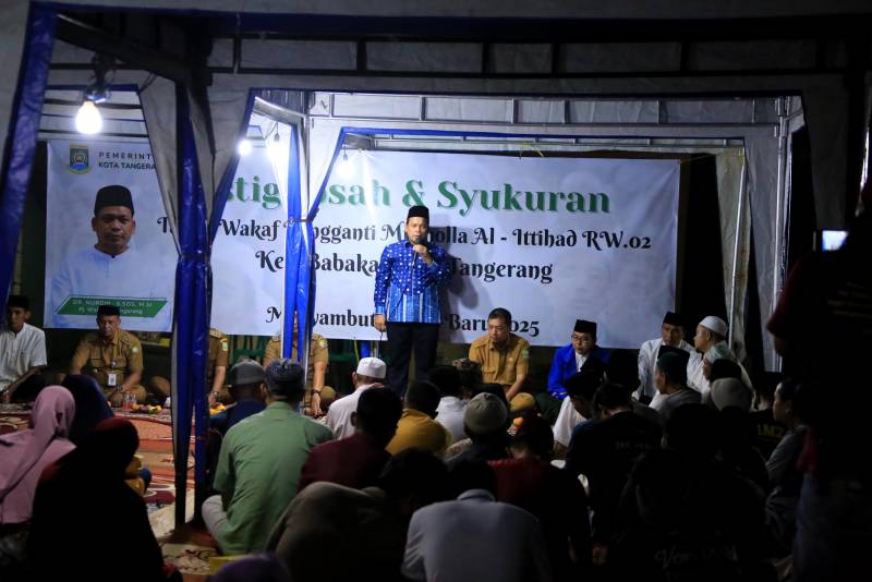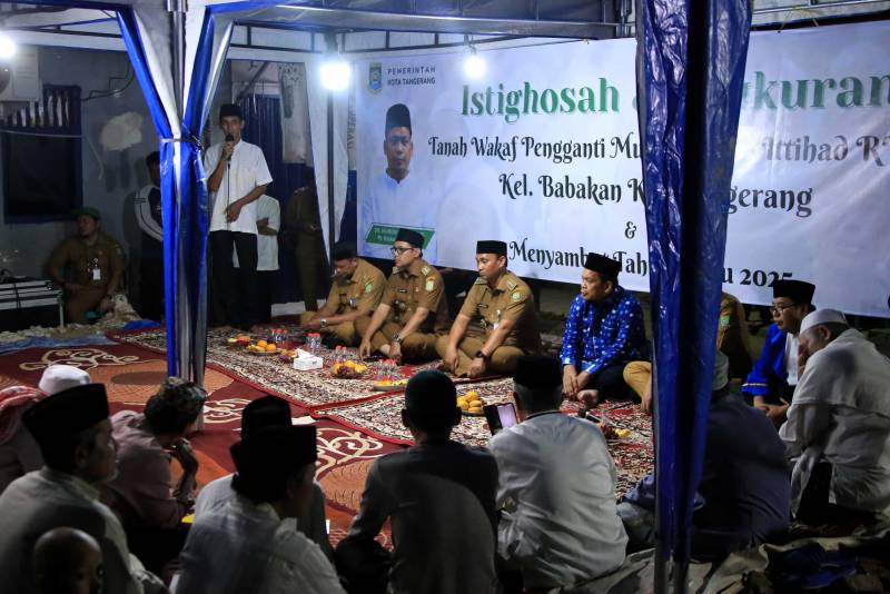 Penjabat (Pj) Wali Kota Tangerang, Dr. Nurdin, Selasa (31/12) malam hadiri acara Istighosah dan Syukuran penyerahan tanah wakaf pengganti untuk pembangunan Musholla Al-Ittihad di RW. 02 Kelurahan Babakan, Kecamatan Tangerang. Acara ini menjadi bukti nyata komitmen Pemerintah Kota Tangerang memperkuat fasilitas ibadah dan sosial masyarakat setempat.