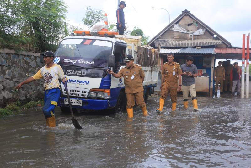 "Kami telah meminta kepada pihak Dinas PUPR untuk langsung membawa pipa dan pompa mobile untuk memompa air yang menggenang, sehingga dalam jangka pendek genangan air ini dapat diatasi. Dan sebagai langkah antisipasi lanjutan, kami juga telah memerintahkan untuk membuat sodetan-sodetan agar aliran air di lokasi ini dapat terpecah sehingga tidak menggenangi jalan ini," jabar Dr. Nurdin.