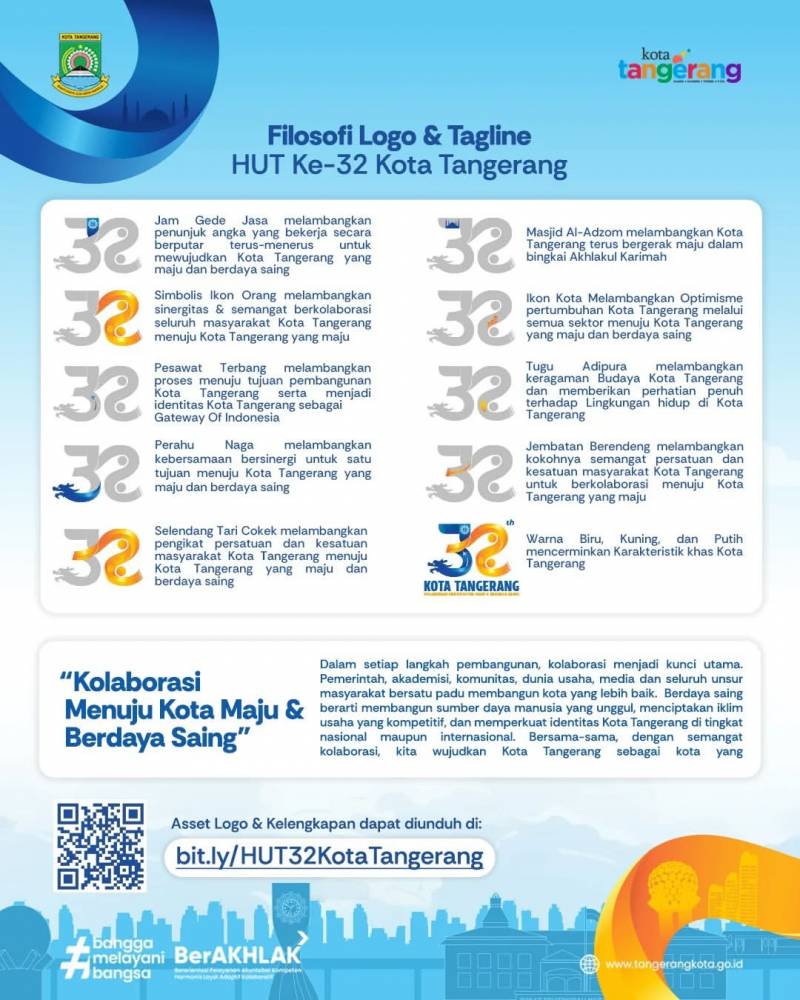 Diketahui, logo desain HUT Kota Tangerang menggambarkan filosofi mendalam tentang persatuan, kebersamaan dan sinergi antara pemerintah dan masyarakat Kota Tangerang.