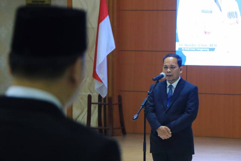 Penjabat (Pj) Wali Kota Tangerang, Dr. Nurdin, melantik dan mengambil sumpah jabatan bagi 31 pejabat administrator dan pengawas di lingkungan Pemerintah Kota Tangerang, pelantikan berlangsung di Aula Al-Amanah, Pusat Pemerintahan Kota Tangerang, pada Kamis (16/01).