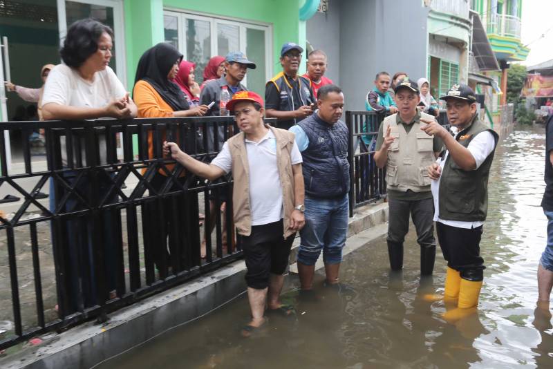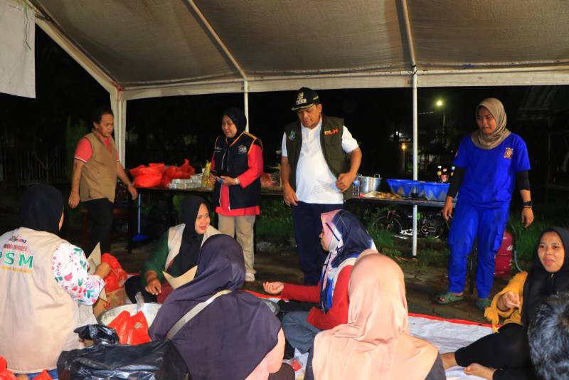 Penjabat (Pj) Wali Kota Tangerang, Dr. Nurdin didampingi personil BPBD, Dinsos dan Dinkes serta perangkat kewilayahan kembali berkeliling wilayah dari siang hingga malam meninjau lokasi yang masih terjadi genangan sekaligus memantau kesiapan fasilitas baik sarana prasarana maupun logistik serta dapur umum bagi warga yang dievakuasi di posko-posko siaga bencana yang berada di Wilayah Kecamatan Neglasari, Benda dan Batuceper. Ketiga wilayah tersebut termasuk ke dalam wilayah paling terdampak akibat hujan intensitas tinggi yang mengguyur Kota Tangerang pada Selasa, (28/01).