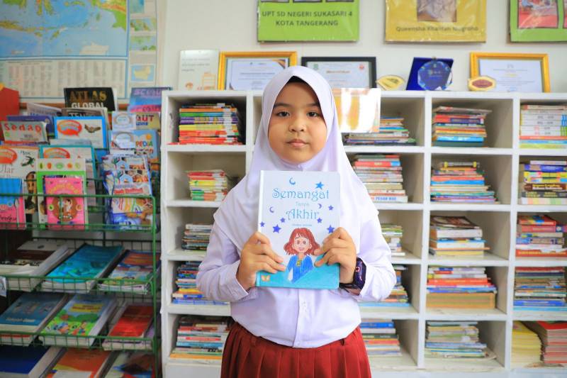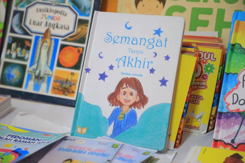 Buku “Semangat Tanpa Akhir” karya Medina Atrinda juga ada di Perpustakaan SDN Sukasari 4 yang dapat dibaca dan menjadi inspirasi bagi murid-murid lainnya.