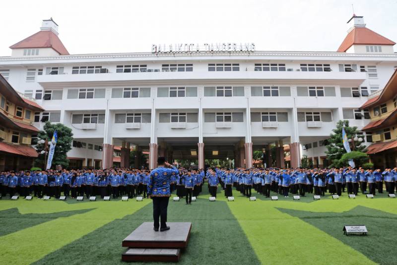 Penjabat (Pj) Wali Kota Tangerang, Dr. Nurdin, menyampaikan pesan dan kesan dalam menjalankan roda pemerintahan di Kota Tangerang selama masa transisi. Bertindak sebagai pembina dalam apel pegawai terakhirnya di Lingkungan Pemerintah Kota (Pemkot) Tangerang, Dr. Nurdin mengapresiasi segala upaya serta kolaborasi seluruh pihak khususnya Aparatur Sipil Negara (ASN) atas kolaborasi bersama dalam mewujudkan pelayanan dan pembangunan berkelanjutan di Kota Tangerang.