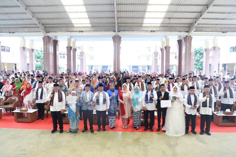 Pantauan di lapangan, puluhan pengantin dengan beragam usia terlihat antusias dan tak lepas dari senyum bahagia hingga akhir rangkaian acara.