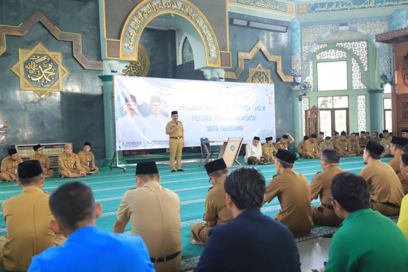 Bansos Biaya Pendidikan Jenjang Perguruan Tinggi diberikan langsung oleh Wali Kota Tangerang Sachrudin di Masjid Raya Al-A'zhom bersamaan dengan kegiatan Pengajian Bulan Suci Ramadhan 1446 H Pegawai Pemerintah Kota Tangerang, Senin (3/3/25).