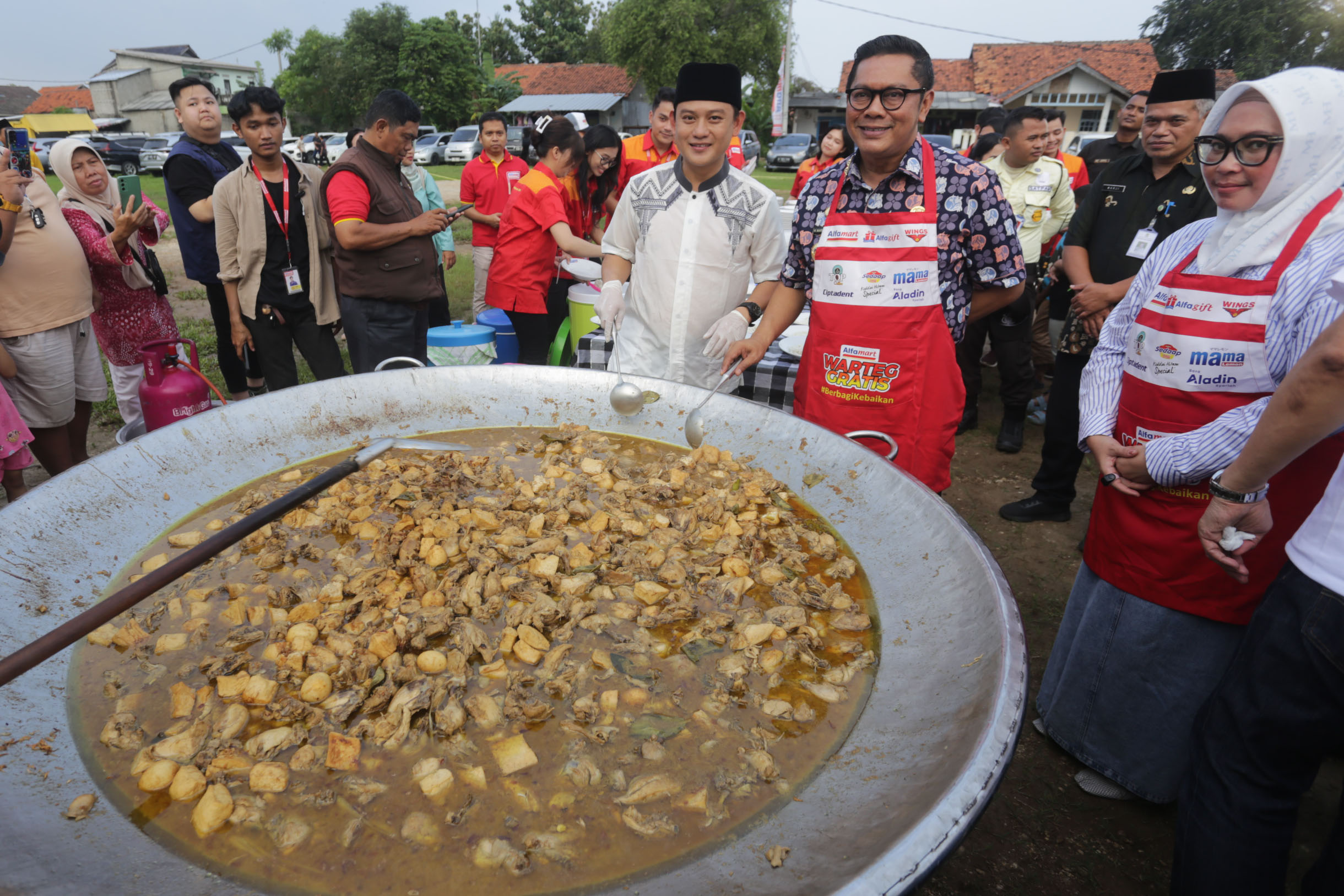 Wakil Wali Kota Tangerang, H. Maryono Hasan, berkesempatan masak besar bersama salah satu influencer kuliner ternama, Bobon Santoso, untuk kemudian dibagikan kepada masyarakat Kelurahan Panunggangan Utara, Kecamatan Pinang, yang memadati Lapangan Bola Blok Mede, tempat berlangsungnya acara.