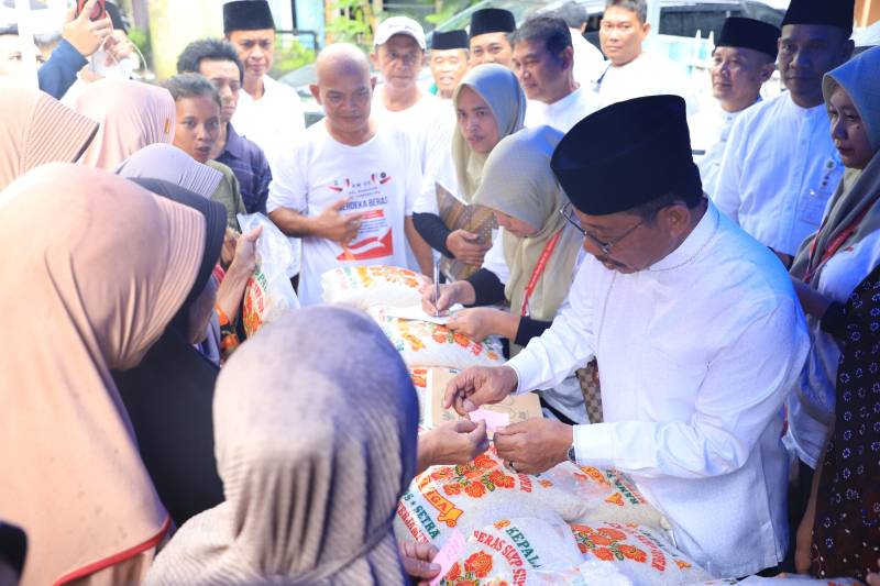 Mewujudkan program 100 hari kerja Wali Kota Tangerang Sachrudin dan Wakil Wali Kota Tangeranng Maryono, Kecamatan Tangerang menggelar program Gampang Sembako Murah secara serentak di delapan kelurahan, Jumat (14/3/25).