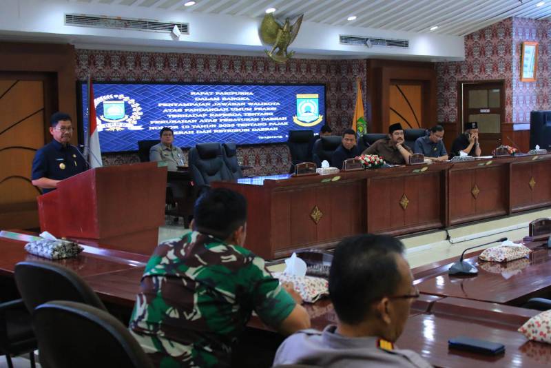 Pada kesempatan tersebut, Sachrudin, memberikan jawaban atas pertanyaan fraksi-fraksi DPRD Kota Tangerang. Sachrudin, menyampaikan, Perubahan Peraturan Daerah Nomor 10 Tahun 2023 tentang Pajak Daerah dan Retribusi Daerah bertujuan untuk meningkatkan efektivitas pengelolaan pajak dan retribusi daerah.