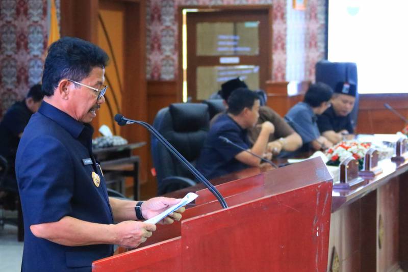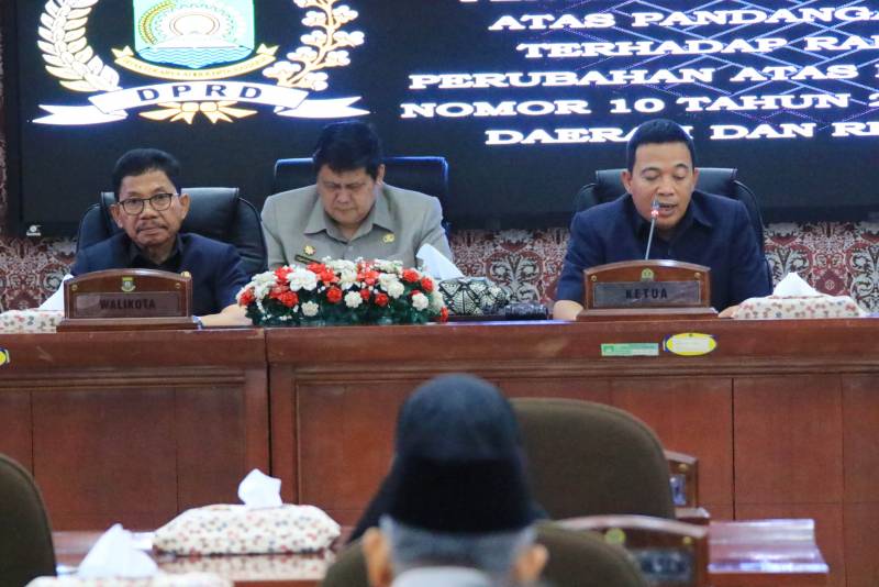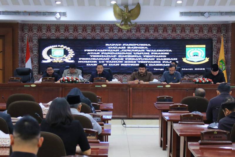 Wali Kota Tangerang H. Sachrudin, menghadiri Rapat Paripurna Dewan Perwakilan Rakyat Daerah (DPRD) dengan agenda Penyampaian Jawaban Wali Kota terhadap pemandangan umum Fraksi-Fraksi DPRD mengenai perubahan atas Peraturan Daerah Nomor 10 tahun 2023 tentang Pajak dan Retribusi Daerah Kota Tangerang, bertempat di ruang rapat DPRD Kota Tangerang, Selasa (18/03/2025).