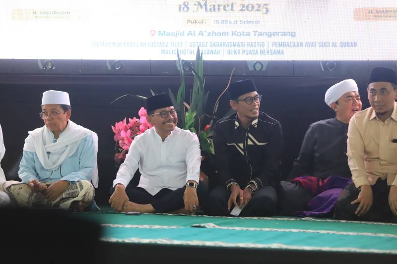 Masjid Raya Al-A’zhom dipenuhi ratusan umat Muslim yang antusias menyambut momentum peringatan Malam Nuzulul Qur'an 1446 Hijriah. Momentum peringatan Malam Nuzulul Qur’an juga dihadiri langsung oleh Wali Kota Tangerang Sachrudin, sore tadi.