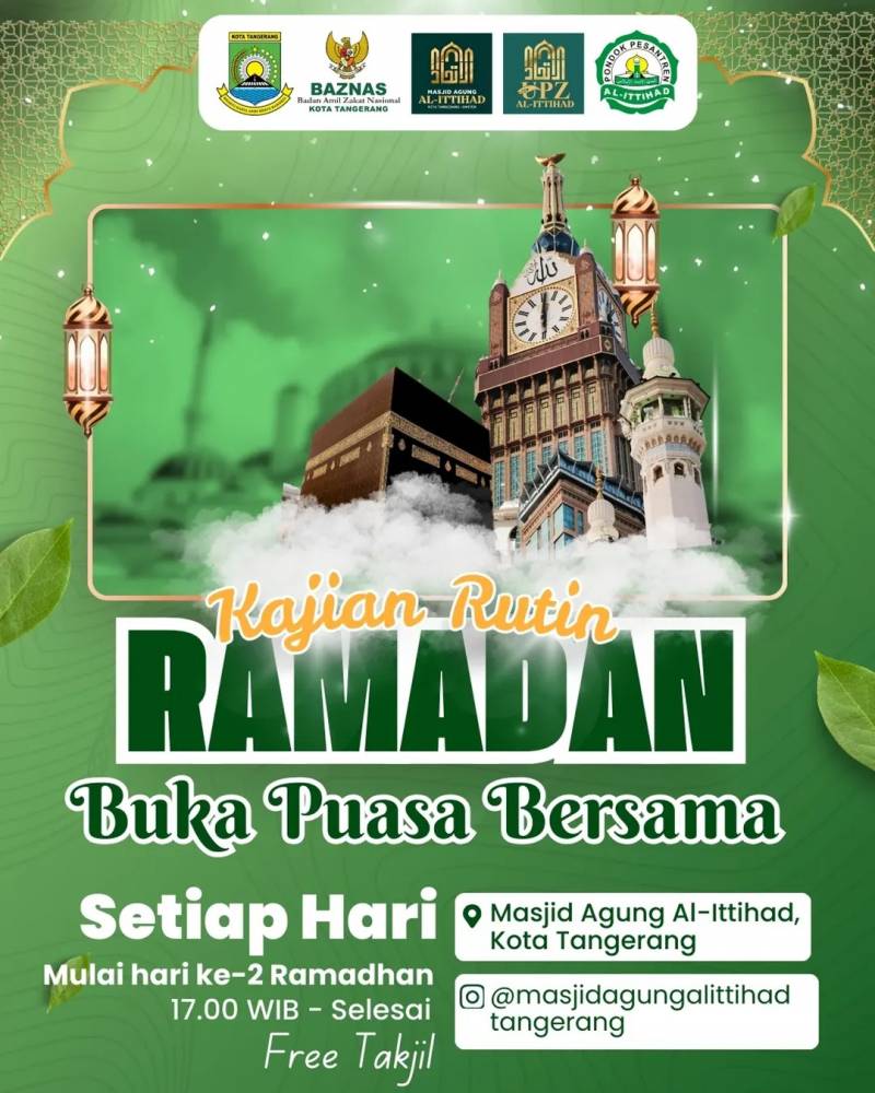 Masjid Agung Al-Ittihad Kota Tangerang kembali mengajak semua lapisan masyarakat untukk meramaikan agenda Qiyamul Lail di pekan terakhir bulan suci Ramadan 1446 Hijriah.