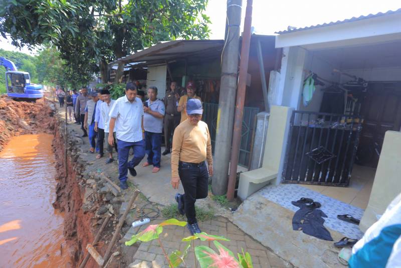 Memanfaatkan waktu akhir pekan, Wali Kota Tangerang, H. Sachrudin, melakukan peninjauan sejumlah fasilitas pengendalian banjir, di antaranya perbaikan turap di Perumahan Pinang Griya, Kecamatan Pinang, serta lokasi lahan yang berpotensi dibangun embung di Kelurahan Cipadu, Kecamatan Larangan, pada Minggu (27/04/2025).