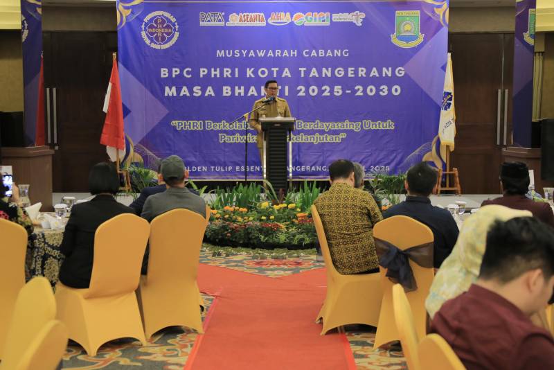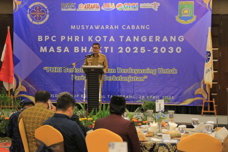 Pemerintah Kota (Pemkot) Tangerang terus mendorong penguatan sektor pariwisata melalui kolaborasi dengan berbagai pemangku kepentingan. Salah satunya ditunjukkan dengan kehadiran Wakil Wali Kota Tangerang, H. Maryono Hasan, pada Musyawarah Cabang (Muscab) Perhimpunan Hotel dan Restoran Indonesia (PHRI) Kota Tangerang Tahun 2025, yang secara resmi dibuka oleh Wakil Wali Kota Tangerang, H. Maryono Hasan, di Hotel Golden Tulip, Selasa (29/04/2025).