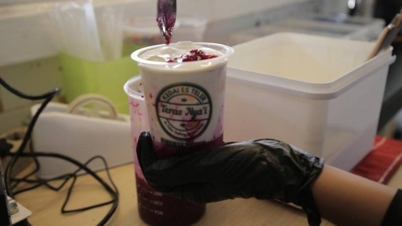 “Es teler buatan kami agak berbeda dengan es teler pada umumnya, kami tambahkan banyak isian yang lengkap, hingga beberapa pelanggan menyebutnya es teler sultan karena isinya yang super komplet, mulai dari jelly-jellyan sampai buah-buahan yang segarnya terjamin,” ujar Muhammad Qosim Adi Kurniawan, Owner Es Teler Teras Nyai Ciledug, Selasa (6/5/25).