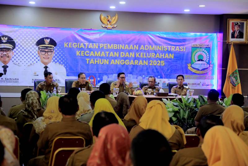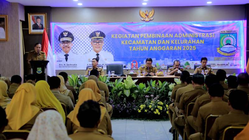 Pemerintah Kota Tangerang terus mendorong transformasi pelayanan publik dari level paling dasar pemerintahan, yaitu kecamatan dan kelurahan. Hal ini disampaikan langsung oleh Wakil Wali Kota Tangerang, H. Maryono Hasan, saat menjadi narasumber dalam kegiatan Pembinaan Administrasi Kecamatan dan Kelurahan Tahun 2025, Selasa (27/05/2025), di Aula Kecamatan Tangerang.