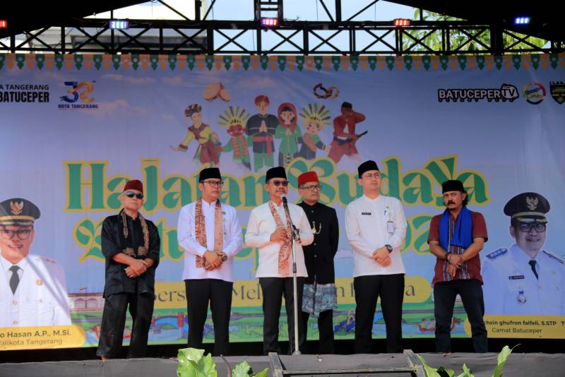 Wali Kota Tangerang, H. Sachrudin, didampingi Wakil Wali Kota H. Maryono Hasan, Camat Batuceper, dan jajaran perangkat daerah, membuka langsung hajatan budaya yang berlangsung di Taman Embung Batusari, Jumat (20/06/2025). Acara dibuka dengan suguhan Palang Pintu yang ikonik dari Dewan Kesenian Batuceper.