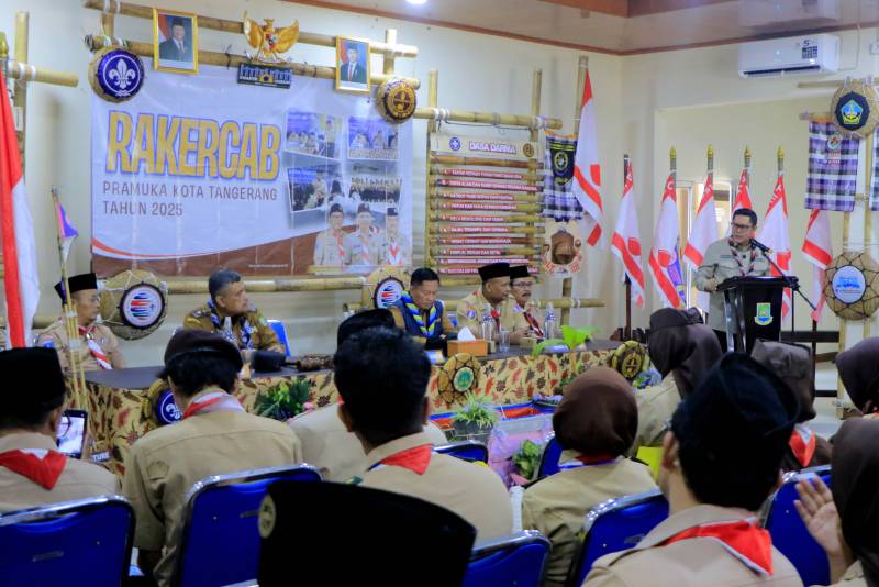 Wakil Wali Kota Tangerang, H. Maryono Hasan, menghadiri sekaligus membuka Rapat Kerja Cabang (Rakercab) Gerakan Pramuka Kota Tangerang Tahun 2025 yang digelar di Aula Gedung Graha HM Masduki, Kecamatan Tangerang, pada Sabtu (21/6/2025).