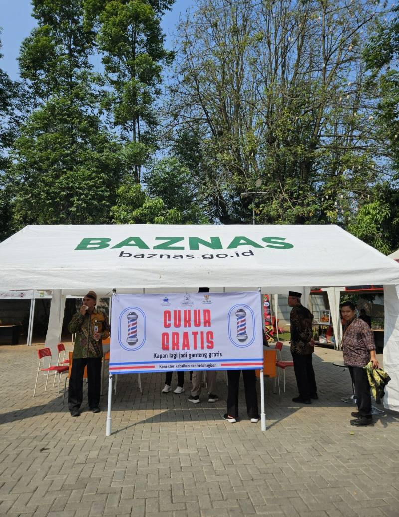Badan Amil Zakat Nasional (BAZNAS) Kota Tangerang berkolaborasi dengan Yayasan Iman Madani mengadakan program cukur gratis di Gedung Majelis Ulama Indonesia (MUI) Kota Tangerang dalam gelaran Halal Fest 2025.