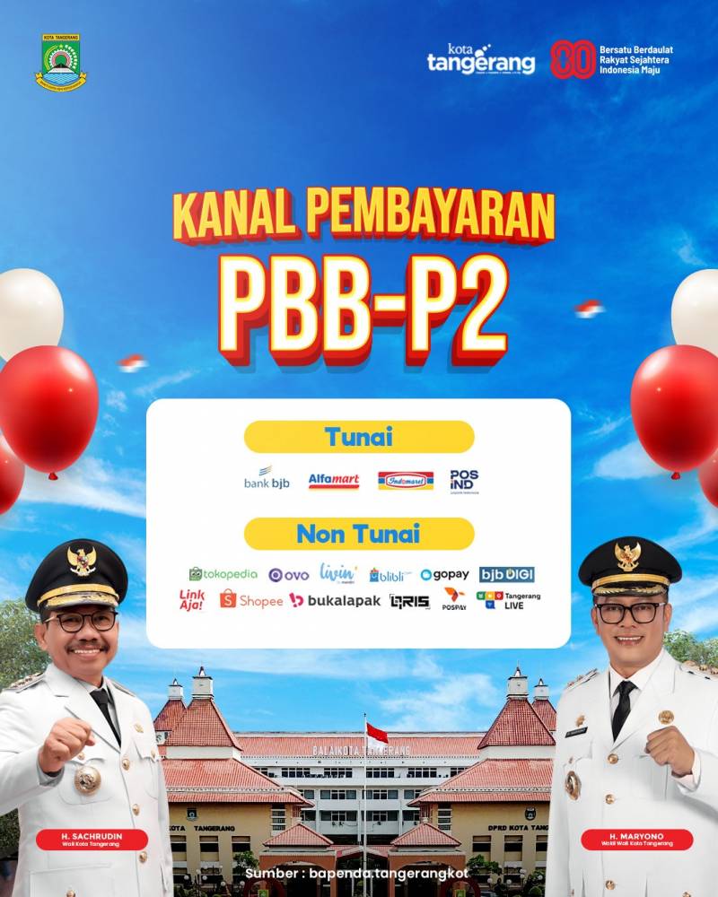Pemerintah Kota Tangerang melalui Badan Pendapatan Daerah (Bapenda) kembali menghadirkan program Diskon Pajak Bumi dan Bangunan Perdesaan dan Perkotaan (PBB-P2) & Bea Perolehan Hak atas Tanah dan Bangunan (BPHTB) Edisi Kemerdekaan.