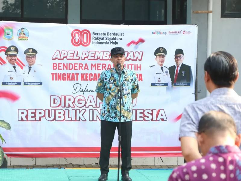 Dalam rangka menyambut Dirgahayu Republik Indonesia, Kecamatan Benda menggelar kegiatan Apel Pembagian Bendera Merah Putih Tingkat Kecamatan dan bagi-bagi bendera ke masyarakat dan pengendara sekitar, yang berlangsung di halaman Kantor Kecamatan Benda, Kota Tangerang, Kamis (7/8/25).