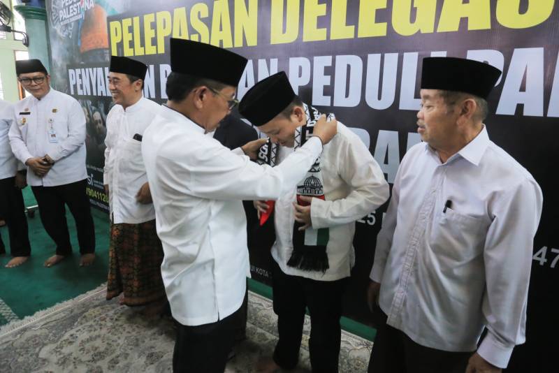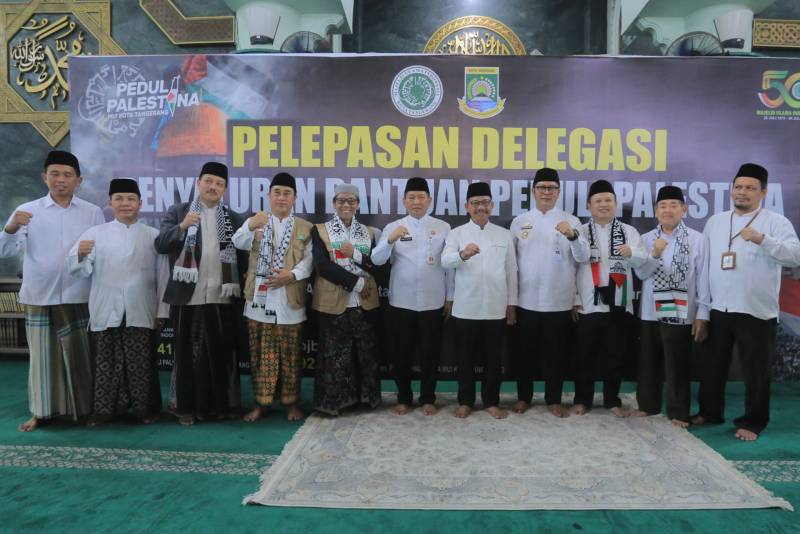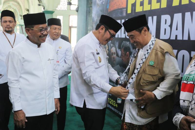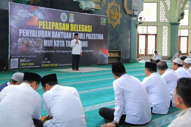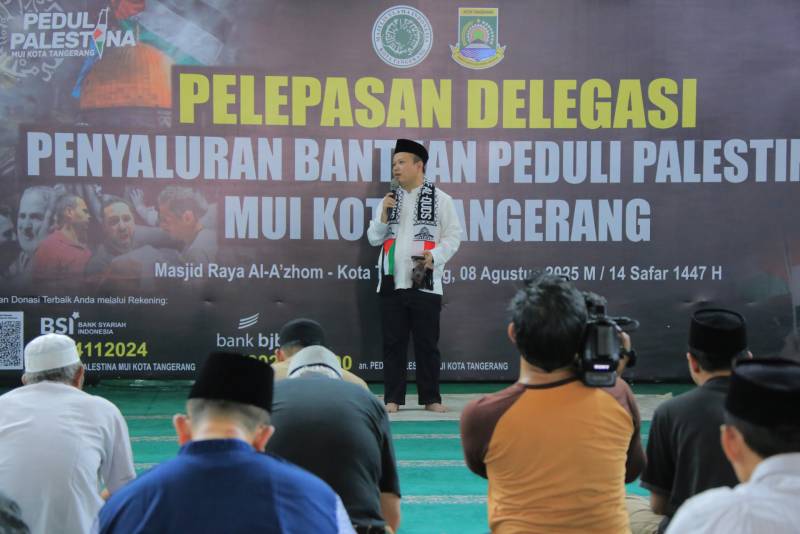 Acara pelepasan delegasi berlangsung di Masjid Raya Al-Azhom, Jumat (08/08/2025). Dalam sambutannya, Wali Kota Tangerang, H. Sachrudin, mendoakan agar bangsa Palestina segera menikmati kemerdekaan sebagaimana Indonesia.