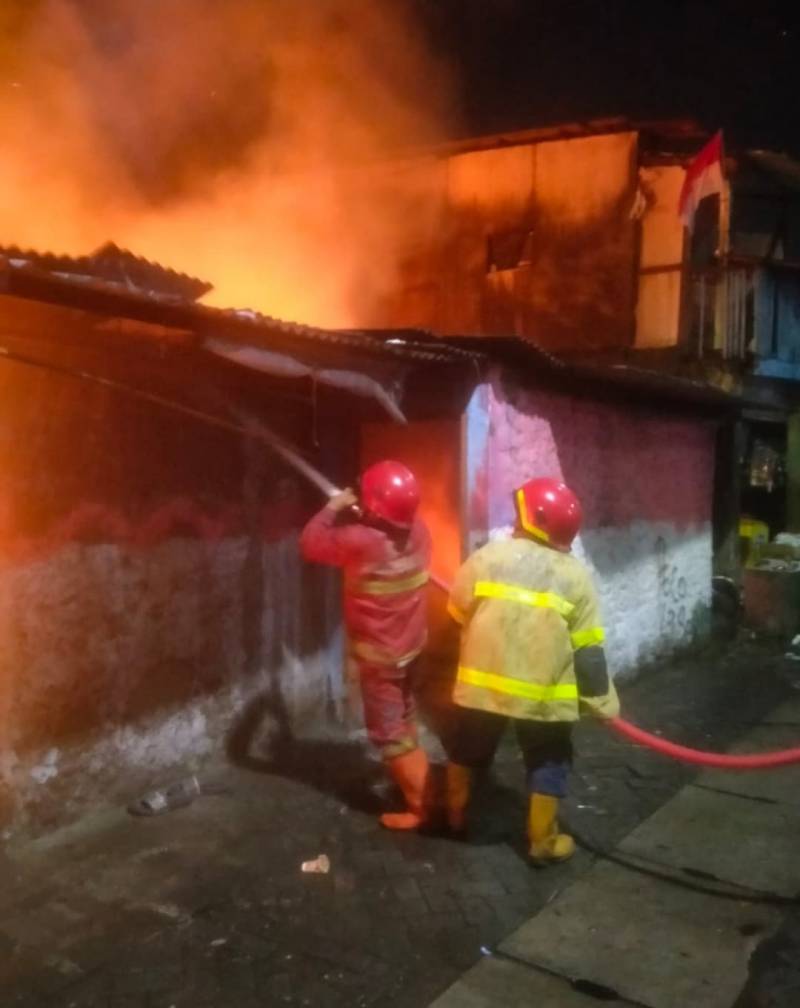 "Kebakaran melanda tiga bangunan sekaligus, yakni rumah tinggal milik Wawan, gudang kardus milik Ridwan, dan satu unit kontrakan milik Bahri. Diperkirakan luas area yang terbakar mencapai kurang lebih 200 meter persegi," jelas Mahdiar.