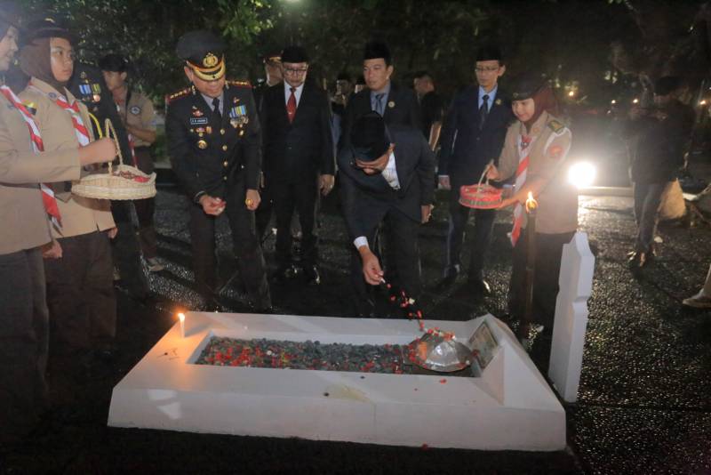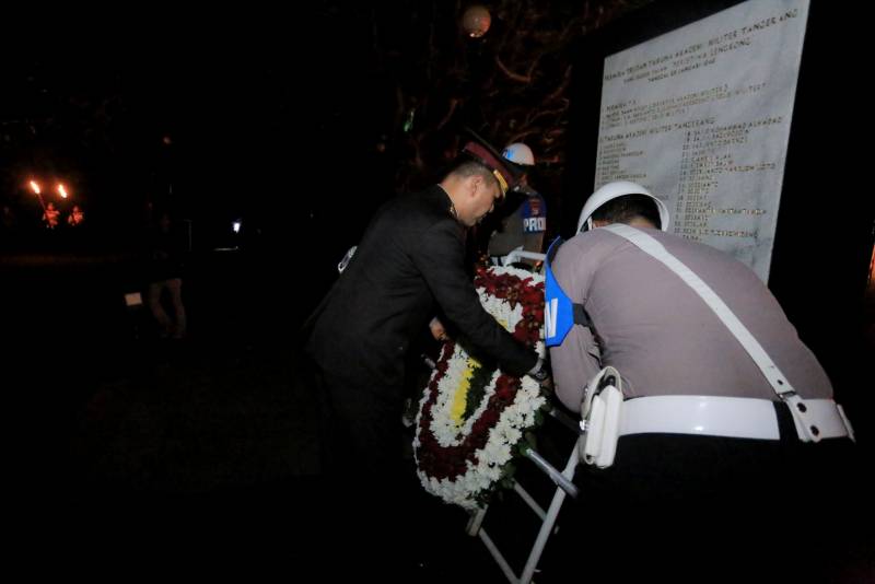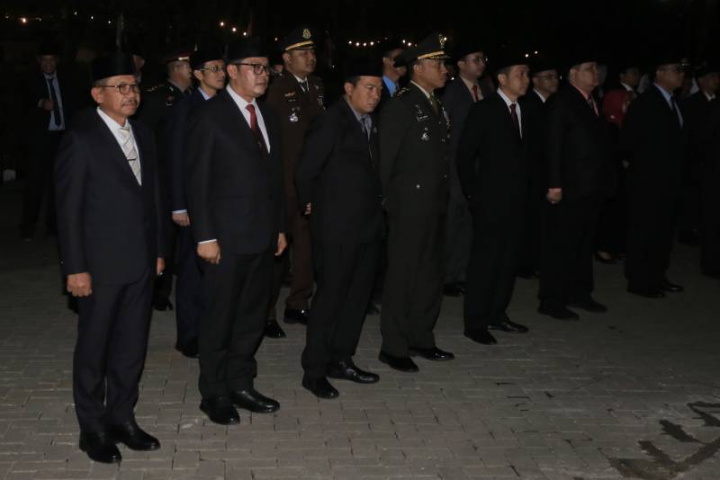 Wali Kota Tangerang, H. Sachrudin, bersama Wakil Wali Kota H. Maryono Hasan dan Jajaran Forkopimda mengikuti Apel Kehormatan dan Renungan Suci untuk mengenang arwah dan jasa pahlawan kemerdekaan Indonesia yang dipimpin oleh Kapolres Metro Tangerang Kota, Dr. Raden Muhammad Jauhari, S.H., S.I.K., M.Si., di Taman Makam Pahlawan (TMP) Taruna Kota Tangerang, Minggu (17/8) dini hari.