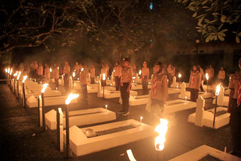 Apel Kehormatan dan Renungan Suci diakhiri dengan prosesi tabur bunga di pusara para pahlawan sebagai simbol penghormatan dan pengingat akan jasa-jasa para pahlawan yang telah gugur.