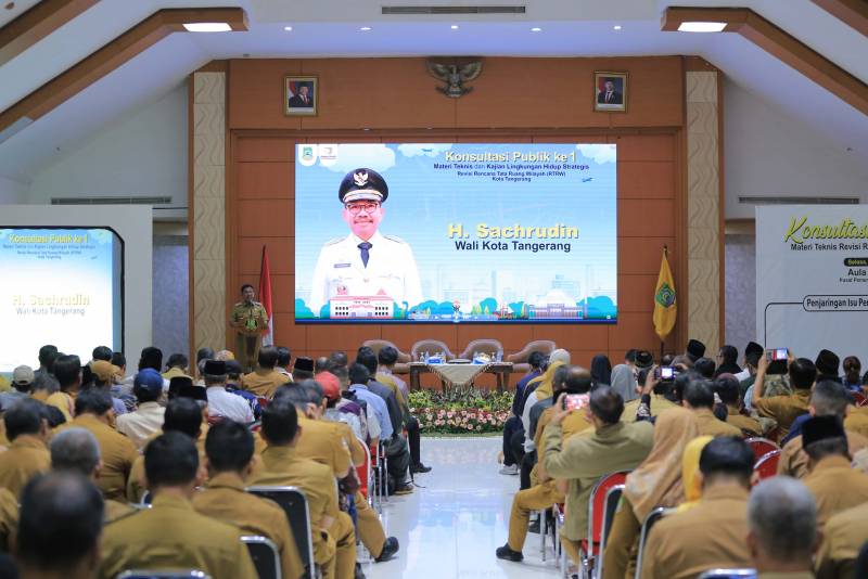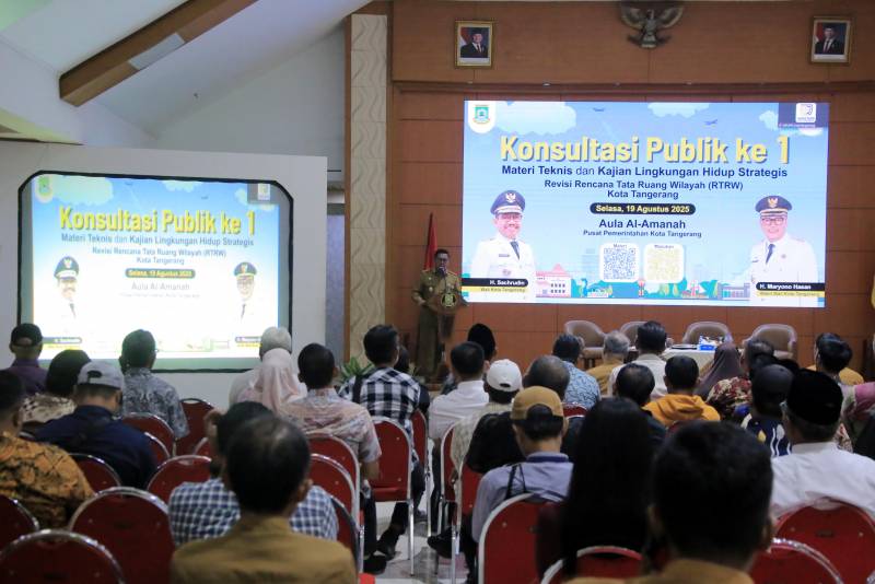 Untuk mewujudkan hal tersebut, Pemerintah Kota (Pemkot) Tangerang melibatkan masyarakat dan berbagai pemangku kepentingan melalui forum diskusi publik yaitu Konsultasi Publik ke-1 terkait Materi Teknis Revisi Rencana Tata Ruang Wilayah (RTRW) dan Kajian Lingkungan Hidup Strategis (KLHS) digelar pada Selasa (19/8/2025) di Aula Al Amanah Puspem.